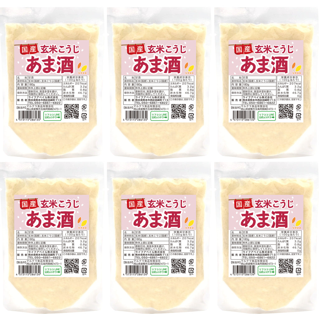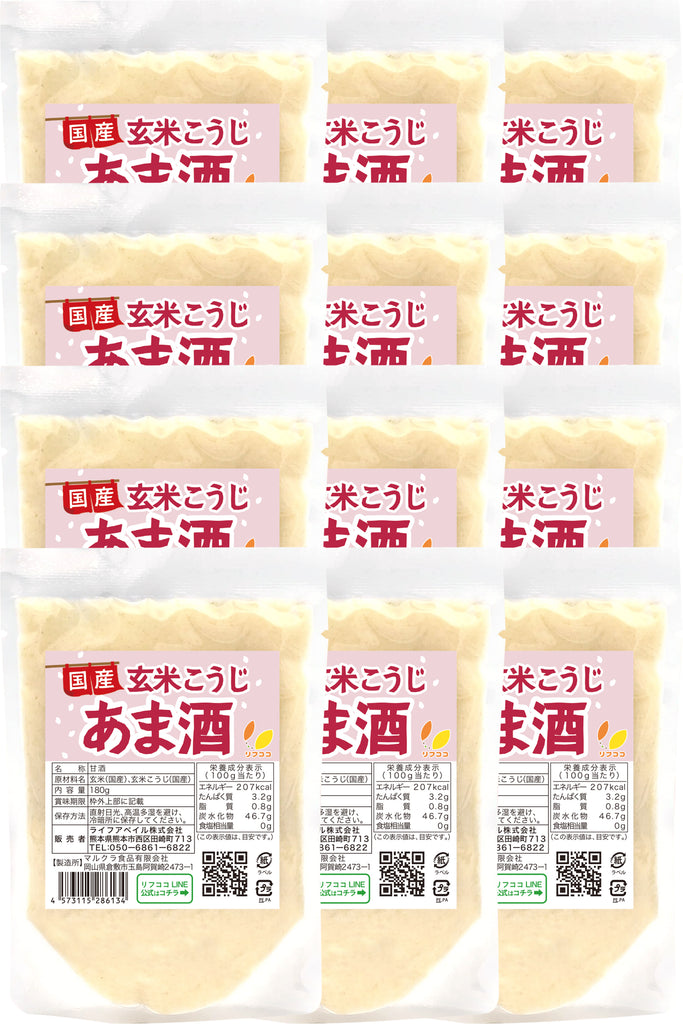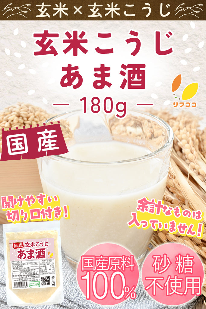 リフココ 国産 玄米こうじ甘酒 1袋180g入り 2袋/6袋/12袋 使い切りパック 甘酒 米麹 砂糖不使用 ノンアルコール